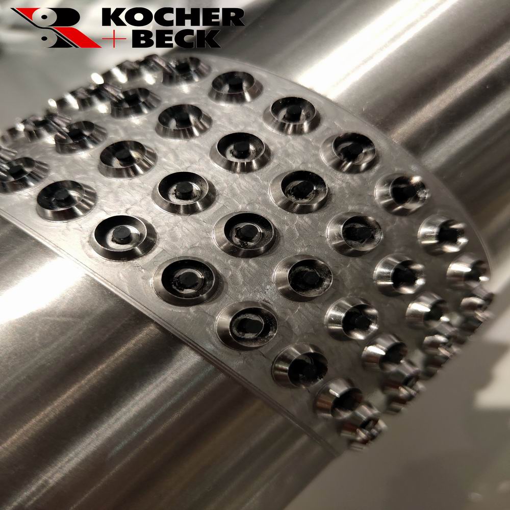 实体轮转圆刀是德国Kocher+Beck的主流产品之一,从公司建立至今将近六十年的历史了,积累了丰富的经验。我们雕刻刀辊采用德国优质的钢材,精密的CNC机床加工而成,精度高、硬度高。实体轮转圆刀一般用于产量较大的产品模切,较厚材料的模切,或者特殊材料的模切,或者特别应用的模切等。实体轮转圆刀用钝了之后,可以进行若干次的修磨。