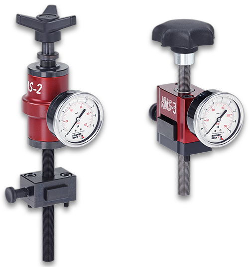 压力表液压测压系统也是德国Kocher+Beck在模切行业中的经典之作,压力表代替传统加压螺杆,调节模切时的压力,有利于指导操作人员平衡模切刀辊两端的压力,以免因压力不均而导致模切切痕不均匀,造成材料浪费和产品模切不合格;以免施加压力过重,甚至压坏精密的刀锋和刀辊的辊枕,而造成不必要的损失。同时,不平衡或过重的压力也会影响刀辊的使用寿命和模切台的稳定性。