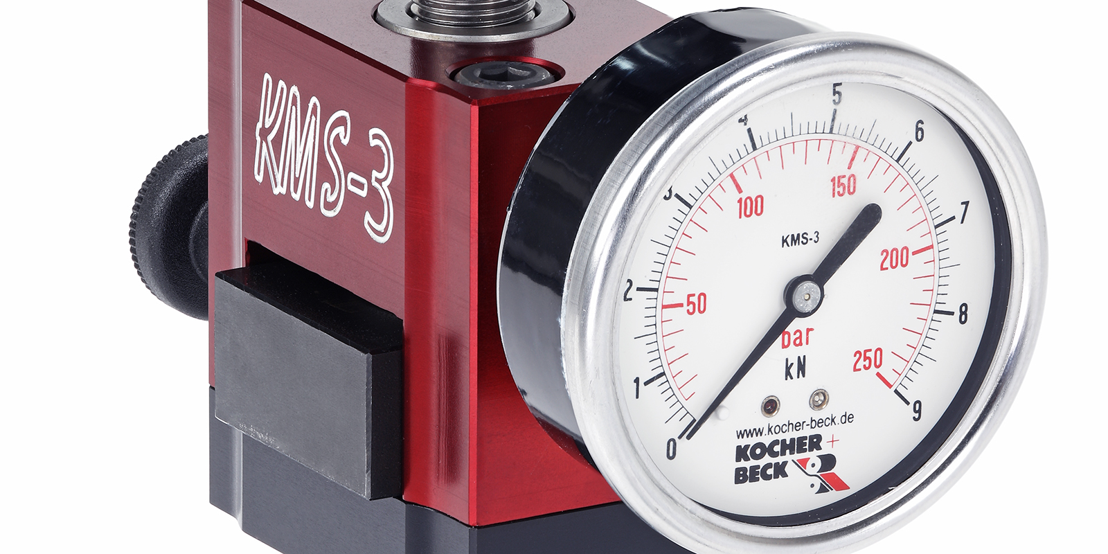 压力表液压测压系统也是德国Kocher+Beck在模切行业中的经典之作,压力表代替传统加压螺杆,调节模切时的压力,有利于指导操作人员平衡模切刀辊两端的压力,以免因压力不均而导致模切切痕不均匀,造成材料浪费和产品模切不合格;以免施加压力过重,甚至压坏精密的刀锋和刀辊的辊枕,而造成不必要的损失。同时,不平衡或过重的压力也会影响刀辊的使用寿命和模切台的稳定性。